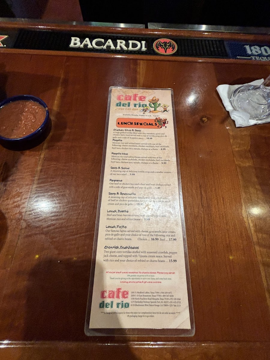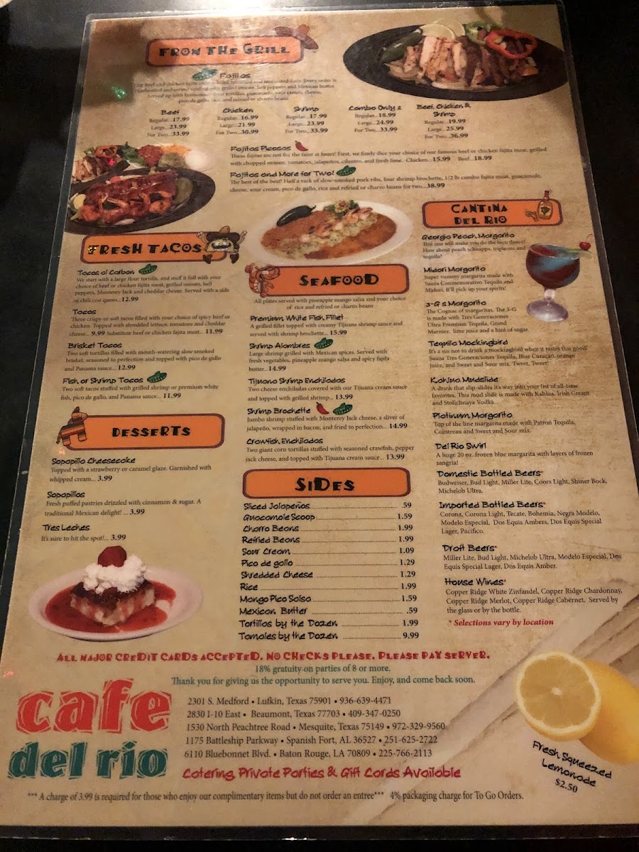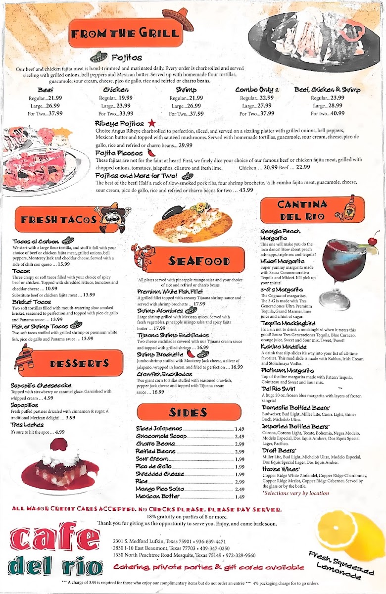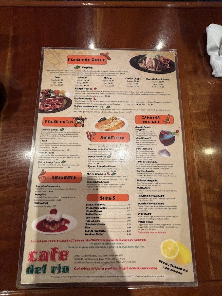 When you step into Cafe Del Rio, located at 2301 S Medford Dr, Lufkin, TX, you’re in for a treat. The Cafe Del Rio Menu brings together a delightful variety of dishes that cater to every taste. Whether you’re craving something light and refreshing or a hearty meal, there’s something here for everyone. The flavors are bold, fresh, and made to satisfy, with options ranging from classic Tex-Mex favorites to more innovative takes on traditional dishes.