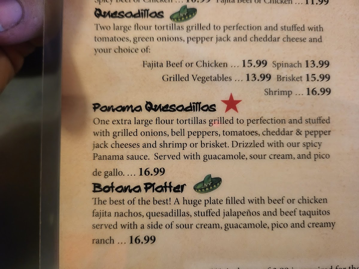 Local favorite. The best of the best! A huge plate filled with beef or chicken Fajita nachos, quesadillas, stuffed jalapeños and beef taquitos served with a side of sour cream, guacamole, pico and creamy jalapeño ranch.